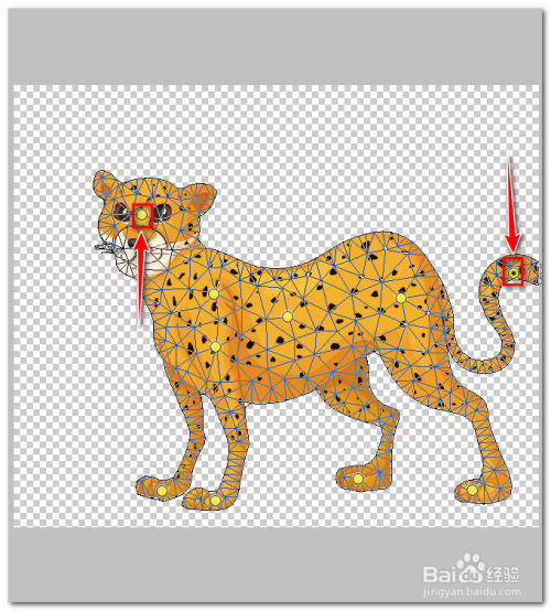 点击【操控变形】后,可以用鼠标在动物身上点击一些固定点作为锚点。