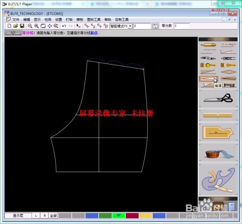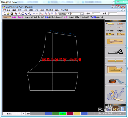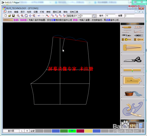 要求:在腰围的1/3处做腰省,第一个省长为10CM,第二个省长为9CM,省宽均为2CM。