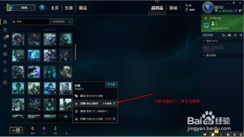 4、将英雄碎片分化获得蓝色精萃;