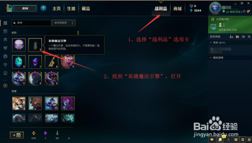 2、新赛季英雄联盟当你本身的品级冲破了31级,那么当你再次进级的时辰就可以获得英雄魔法引擎,选择“战利品”选项卡找到“英雄魔法引擎”;