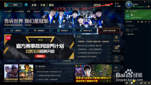 1.首先进入游戏,发现没有点券,怎么买英雄呢,往下看;