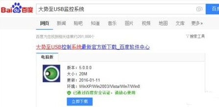 除了以上方式外,还可以经由过程第三方USB东西来解除对Q运行的禁止,我们直接在百度中搜刮“年夜逝至USB监控系统”安装到到电脑里面