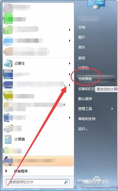 单击起头按钮,选择节制面板选项。