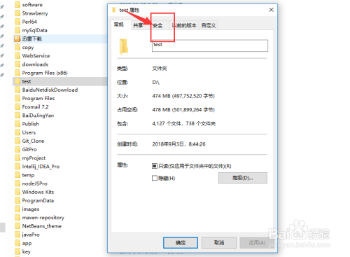 2. 选中文件夹鼠标右键属性中点击平安选项卡 ,没如图所示