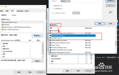 5. 在搜刮成果输出框中找到如图所示的【Network service】
