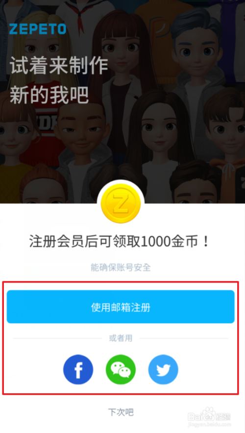 我们安装完zepeto游戏后,点击图标进入。进入后,选择下方的建造zepeto的选项,进入注册界面。