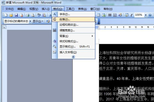 点击“格局”菜单,选择“段落”。