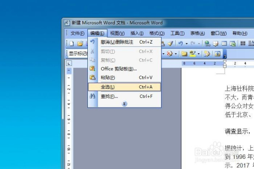 点击“编纂”菜单,选择“全选”。