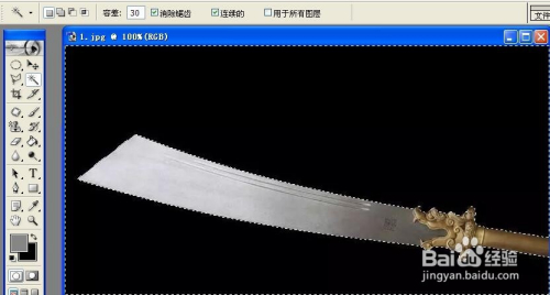 用魔术棒东西,选出年夜刀图片中,黑色的布景区域。