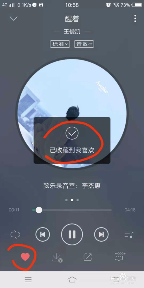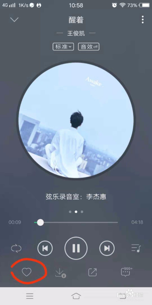 进入到歌曲的播放页面,鄙人面可以看到一个心形的小图标