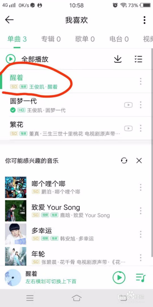 点进去,就可以看到方才我们保藏的王俊凯的这首醒着啦~