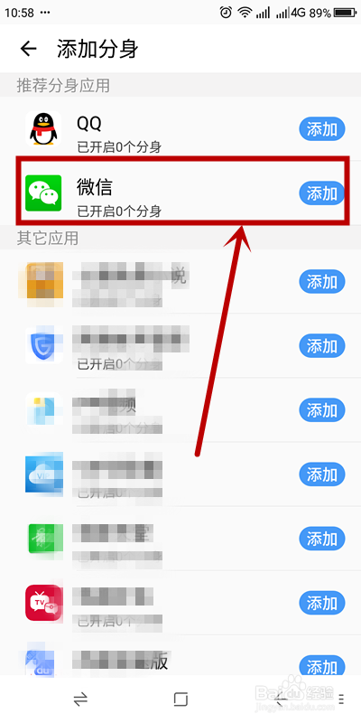 在添加兼顾页面,找到要兼顾的微信,单击后面的“添加”