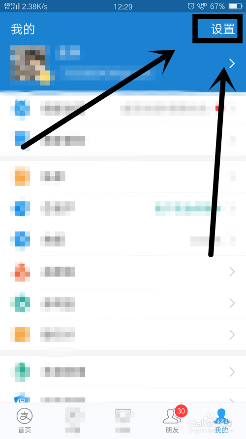 在付出宝小我中间,点击进入右上角-设置,如图所示