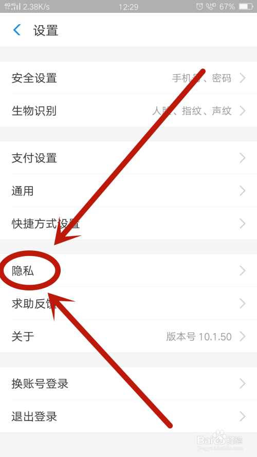 在设置中,点击进入-隐私-设置,如图所示