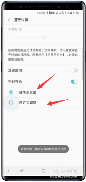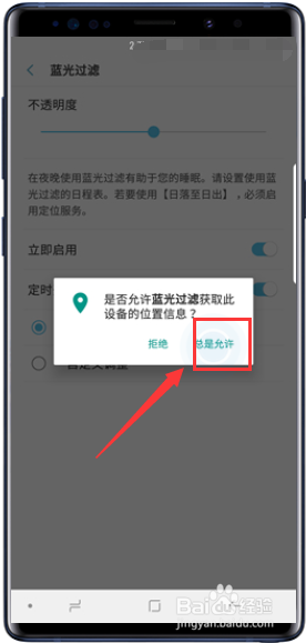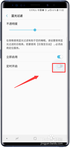 进入蓝光过滤界面后将当即开启开关打开,如下图所示