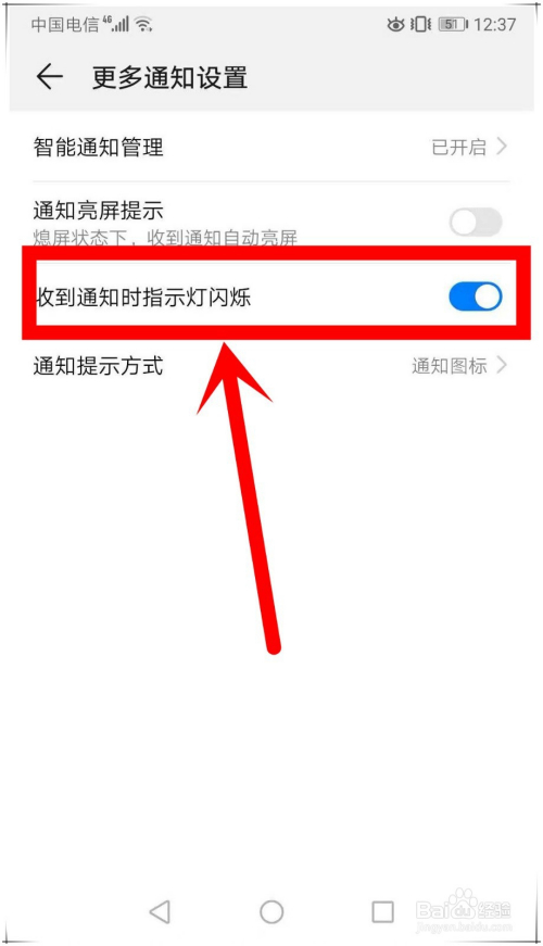 华为手机呼吸灯设置第五步:若是你是要某个应用有新信息时,指示打闪灼,那么仅开启“收到通知时指示灯闪灼”开关还不敷,还必需开启该应用的“许可通知”开关。