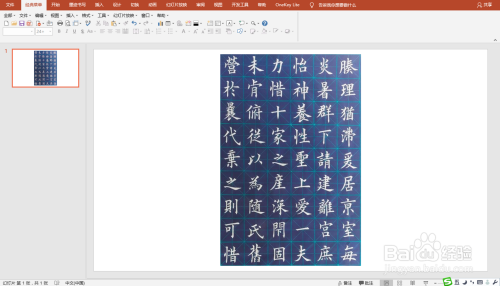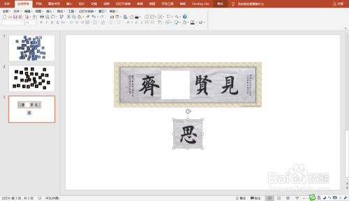 打开PPT,插入包含本身喜好的字例的书法作品或字贴。
