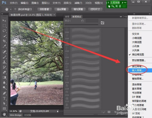 呈现的下拉菜单中,选择载入画笔选项。