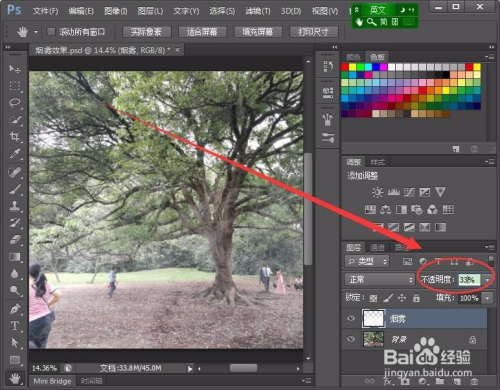 最后,点窜烟雾图层的不透明度,发生薄雾的结果。