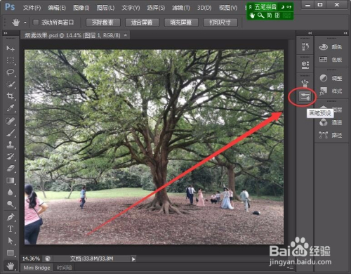 Photoshop窗口中,选择画笔预设面板。