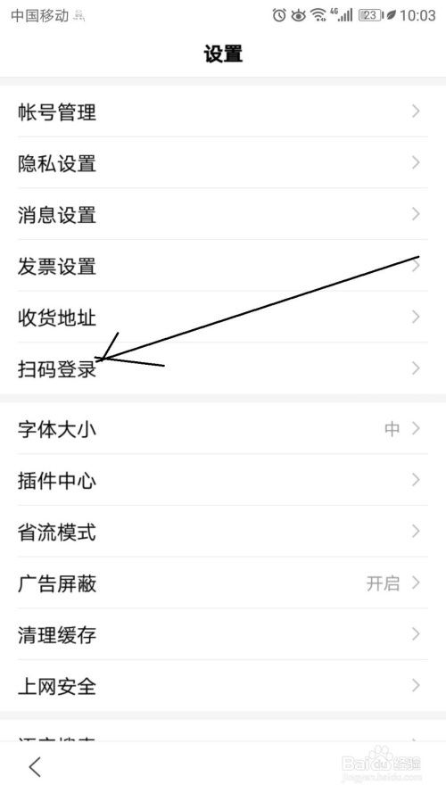 然后切换到百度设置页面选项。而在这页面中找到点击扫码登录。