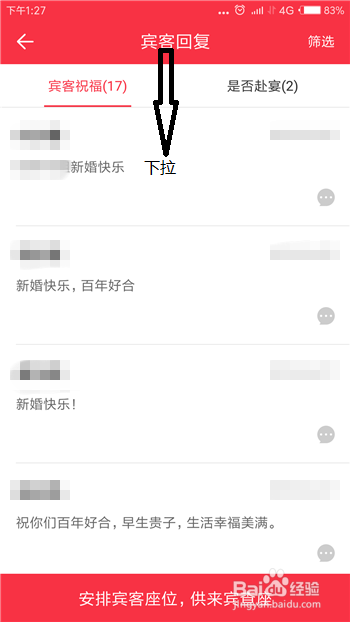 当然这里是我们所有的电子请柬的答复,而想要具体的查看某一个电子请柬的答复需要下拉界面。
