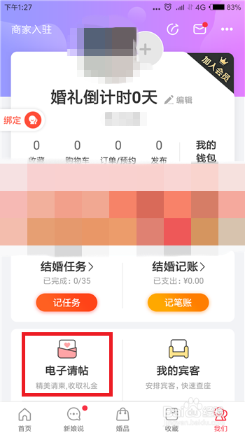 点击后会打开小我本家儿页,鄙人方的功能中找到【电子请柬】并点击打开。