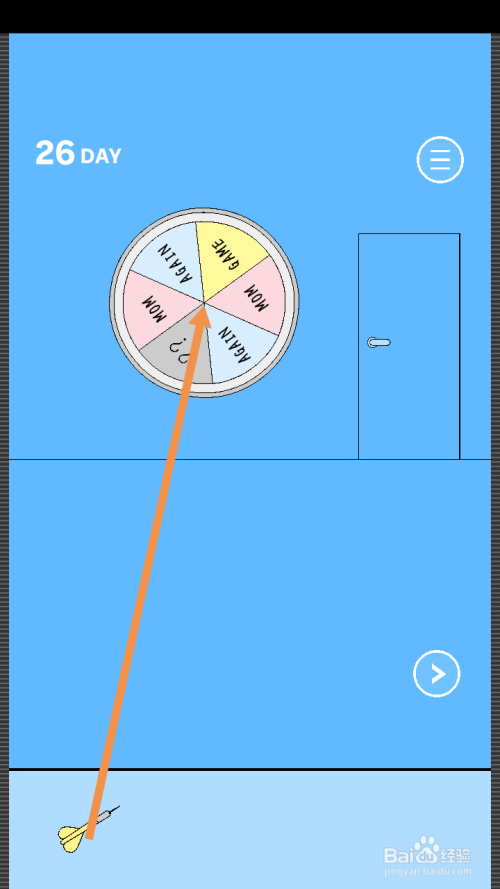 获得黄色飞镖后,点击标的目的左箭头,进入左边的房间。