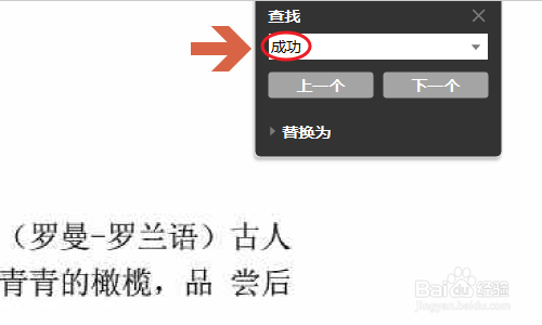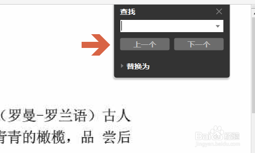 这个图标就是用于快速查找的,不外只撑持文本内容的查找哦,点击今后就会在文档的右上角弹出下图所示的窗口;