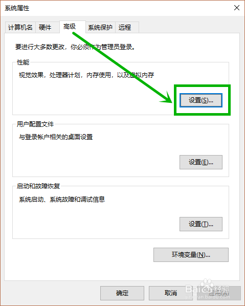 2.在打开的【系统属性】窗口的【高级】选项卡的【机能】组点击【设置】按钮