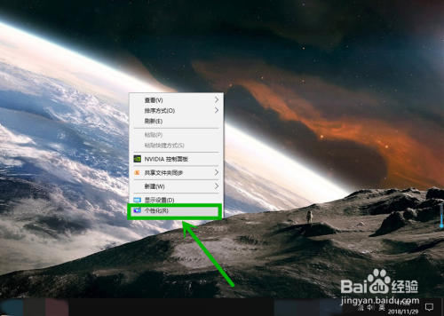 1.桌面空白处右击,在右键菜单选择【个性化】选项