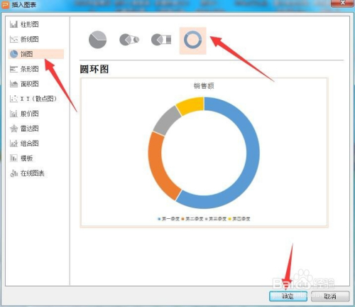 第四步:插入图表窗口,选择饼图-圆环图并确定。