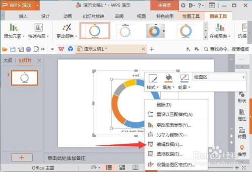 第五步:插入当作功后的圆环图上鼠标右击点击编纂数据。