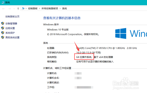 进入“属性”,我们就能在找到这台电脑到底是几多位系统的了。如图所示。