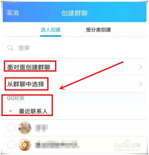 在新打开的窗口中,可以有三种体例来选人建立群聊,别离是:面临面建立群聊、从群聊中选择人建立群聊、从QQ老友中选择人建立群聊。