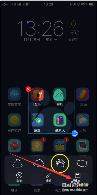 图形截屏,可以自界说图形,好比小编选择一只狗爪印的图案,调整大小后,点击保留,截屏当作功。