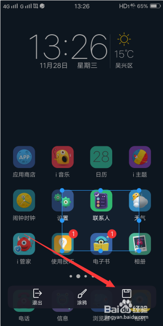 点击后,会在屏幕中心呈现一个矩形框,可以拖动改变矩形大小,矩形包含的内容就是截屏内容,确认大小后点击右下角的保留。