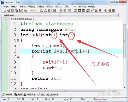 函数界说中的参数名称为形式参数,例如自界说函数add(int n,int m)中的n和m就是形式参数。