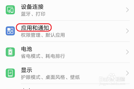 点击设置今后,页面就切换到了设置列表中,我们选择列内外的“应用和通知”选项;