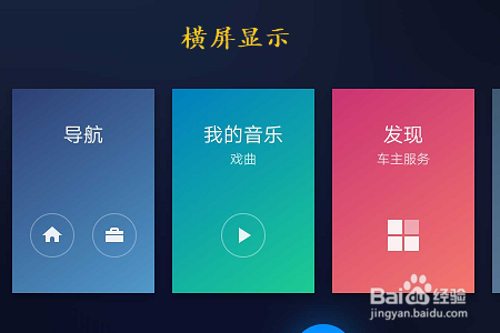 有别于年夜部门导航软件,百度CarLife是横屏的,相信这是良多人甘愿答应看到的吧,究竟结果年夜部门智妙手机都是长条状的,放置在车内视野不敷广漠,并且看起来也不是太便利,下图就是它的首界面;