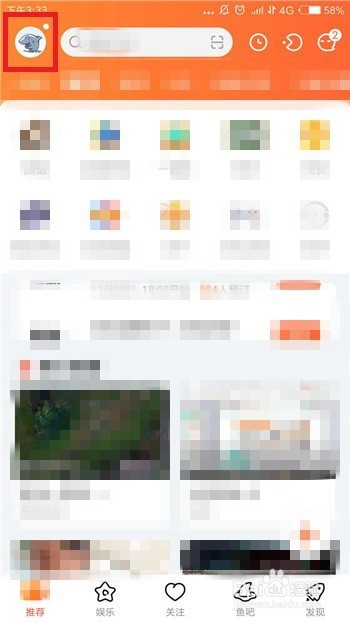 进入到斗鱼的首页后在左上角找到我们的斗鱼头像并点击打开小我本家儿页。