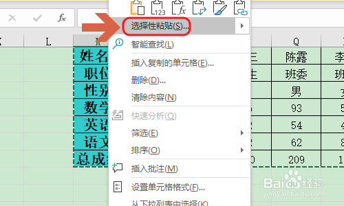 然后点击表格中的空白处,也就是新的表格要放置在的处所,而且点击鼠标右键选择“选择性粘贴”;