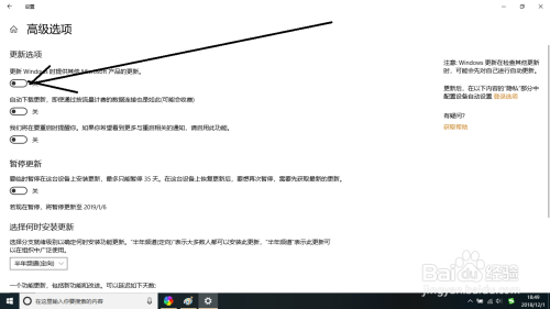 即可打开高级选项对话框。而对话框中已经默认开启更新Windows。