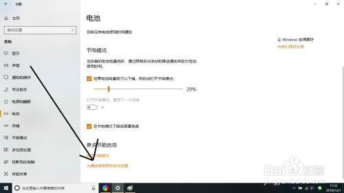打开电池显示选项中点击“为播放视频更改电池设置”选项。