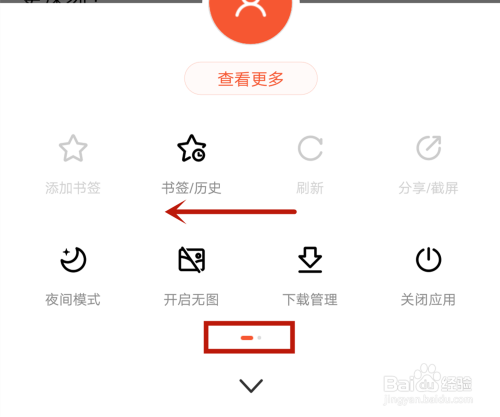 在浏览器菜单中,标的目的左滑动进入第二页菜单,如图所示