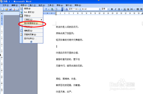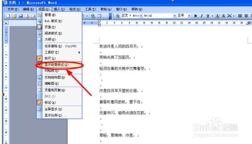 会呈现一个下拉菜单,里面有个显示段落标识表记标帜的选项。