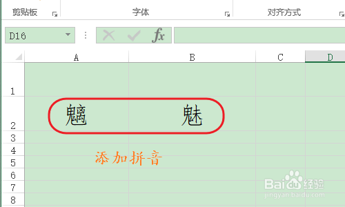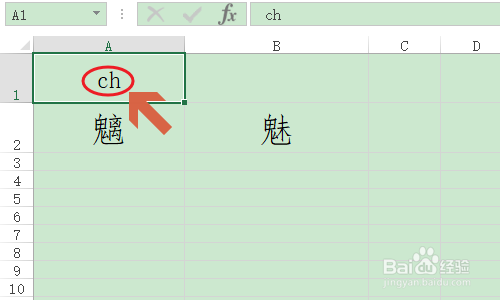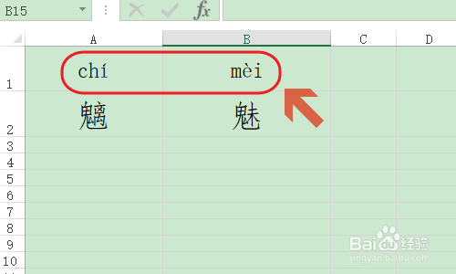 这时我们选择文字上方的空白单位格作为拼音输入区,首先输入拼音中不带有调子的部门,好比下图...