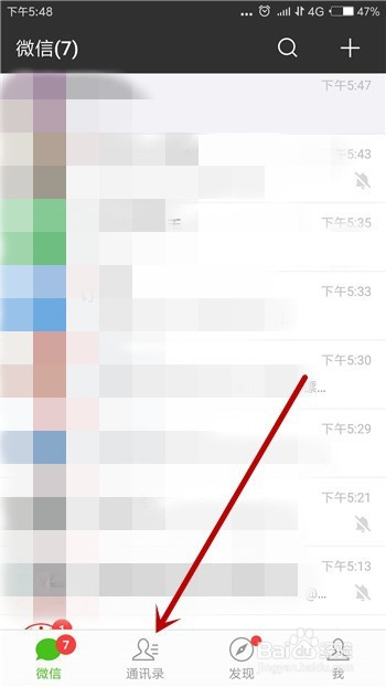 先打开微信,在微信的动静首页中点击底部的【通信录】选项。