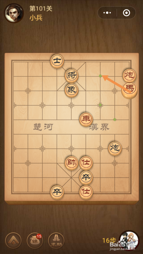 第十五步馬移动到下图中箭头标注的位置。