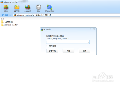 建立好压缩包后,我们双击打开方才建立好的文件,可以看到弹出了需要输入密码的对话框
